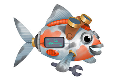 I’m a Robot Fish based on a Shubunkin Goldfish. I’m a mechanic and I can fix anything! My dream is to be a real Goldfish one day. I also know how everything works so you will find me on on boxes and in manuals from time to time.