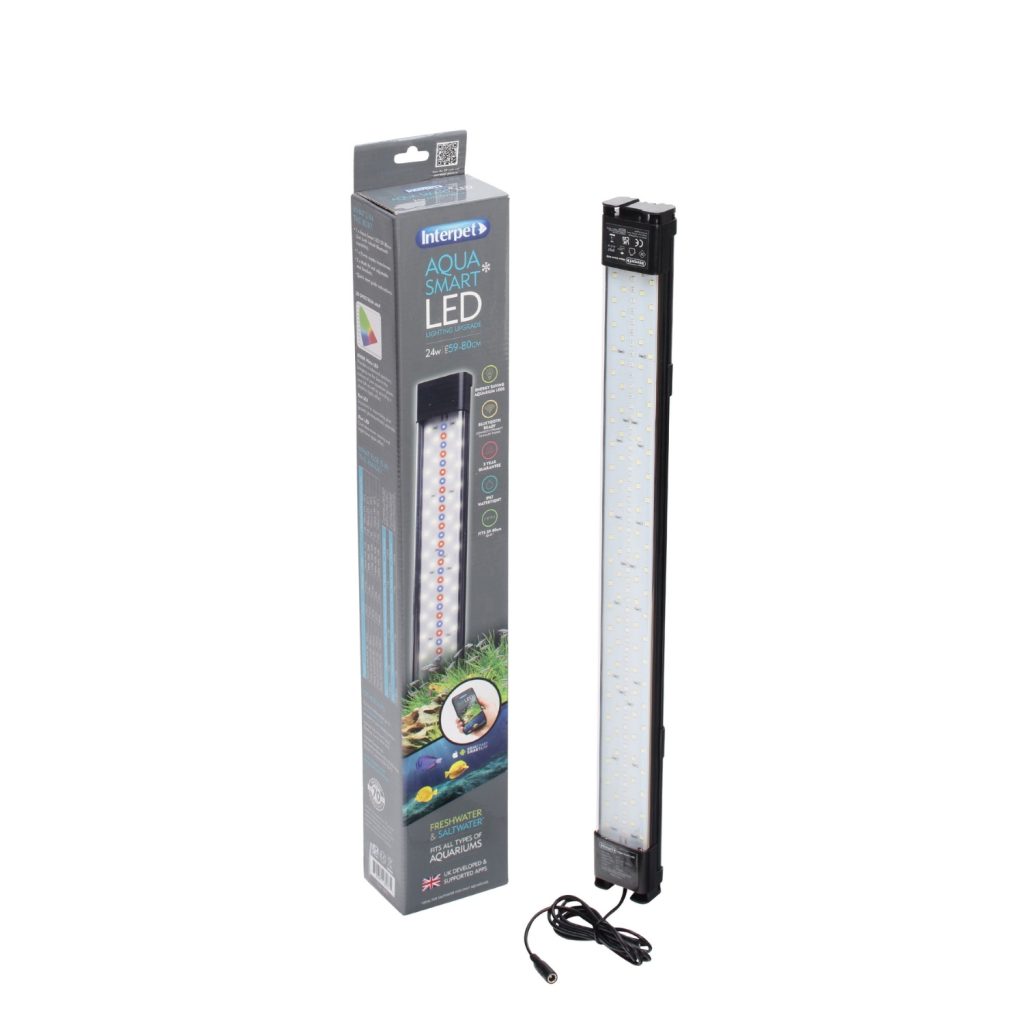 Aqua Smart LED Lighting upgrade is 24 watts and recommend to fit aquarium size: 59-80cm (23-31”). This LED lighting range is Bluetooth ready and can connect straight to a smart phone or tablet via the free Aqua Smart App which has a range of features including: Instant controls, Instant weather & Instant timers. Also able to create bespoke pre-set programmes, then save, demo, play or delete the saved pre-sets. As well as group multiple Aqua Smart device’s together, or create multiple group's and change device's name's & group name's and get help & support, all controlled from your smartphone via Bluetooth.