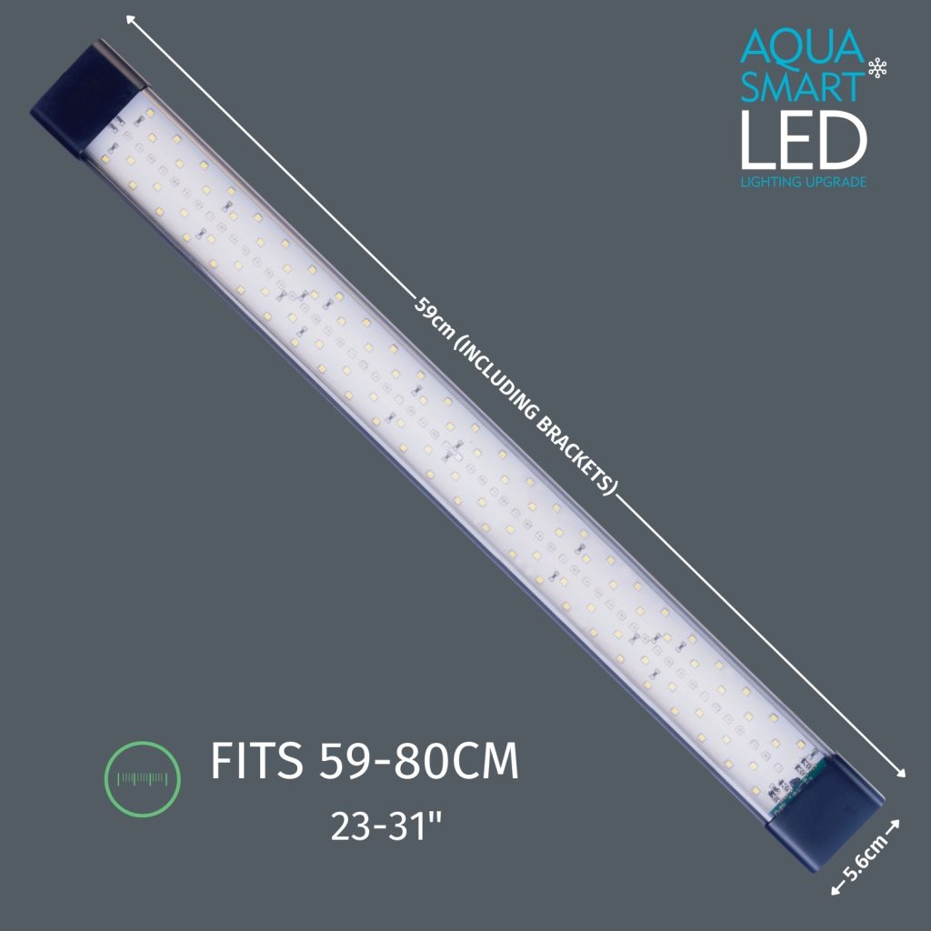 Unique multi-fit adjustable end brackets complete with screws, allows Aqua Smart LEDs to be retro-fitted to the underside of any aquarium hood or placed onto the edge of the aquarium using the adjustable end brackets. Also comes complete with T5 & T8 lighting adapters so the Aqua Smart LED can be directly installed into an existing T5 or T8 lighting unit. Aqua Smart LED has White, Red and Blue LEDS. 6500k White LED - provides a balanced spectrum, bringing out the best in the colours of your aquarium plants and fish as well as providing a daytime ripple effect. Red LED - important in maximising plant growth (photosynthesis) potential. Blue LED - cool blue moon viewing and night time ripple effect. Advancements in LED technology have created increases of over 100% more brightness and 50% greater running efficiencies compared to standard T5 and T8 fluorescent lighting. This new unique extrusion design enables advanced waterproofing as well as sufficient thermal dissipation. Keeping Aqua Smart LEDs running dry and cool for over 3 years. See more
