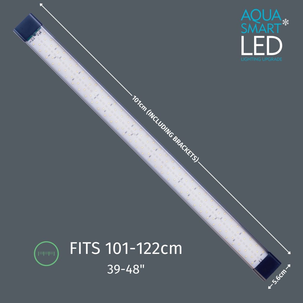 Aqua Smart LED Lighting upgrade is 33 watts and recommend to fit aquarium size: 101-122cm (39-48”). This LED lighting range is Bluetooth ready and can connect straight to a smart phone or tablet via the free Aqua Smart App which has a range of features including: Instant controls, Instant weather & Instant timers. Also able to create bespoke pre-set programmes, then save, demo, play or delete the saved pre-sets. As well as group multiple Aqua Smart device’s together, or create multiple group's and change device's name's & group name's and get help & support, all controlled from your smartphone via Bluetooth.