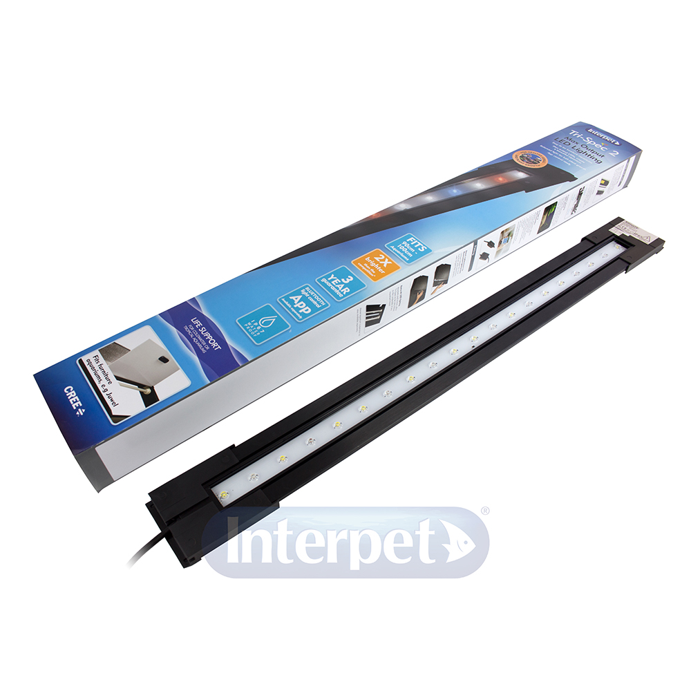 Following three years of research and development, Interpet is proud to present Tri-Spec 2, a maximum output aquarium light with a uniquely engineered lens system that delivers unparalleled light output in its class. Its LEDs are tuned to emit the optimal spectrum for growing stunning reefs and lush aquascapes. Designed to be versatile, the Tri-Spec 2 comes in a variety of sizes, with three fitting options and it can be used to replace the lights in any size of furniture aquarium. The lighting unit is IP67 water proof, enabling it to be submersed in depths of up to one metre. Take control of the lighting levels and on/off timings with the Tri-Spec App Controller upgrade. Need to know which size Tri-Spec 2 fits your aquarium? See the sizing guide in the image carousel above.