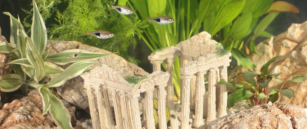 Although it’s tempting to use objects you’ve found from elsewhere, it’s so important to use ornaments from the aquatics section of a reputable store.